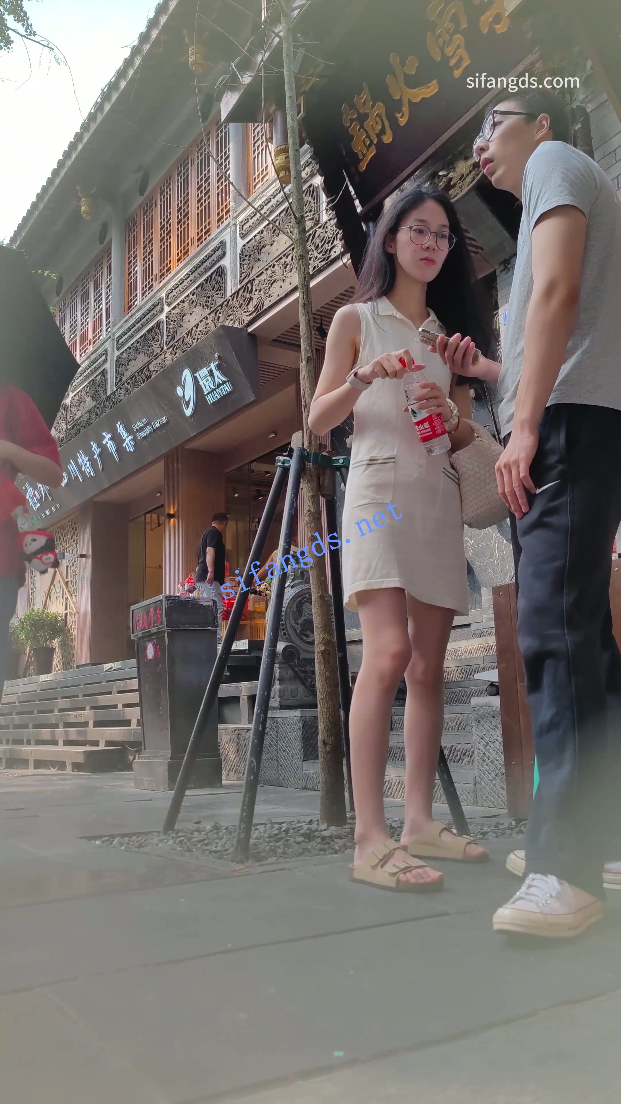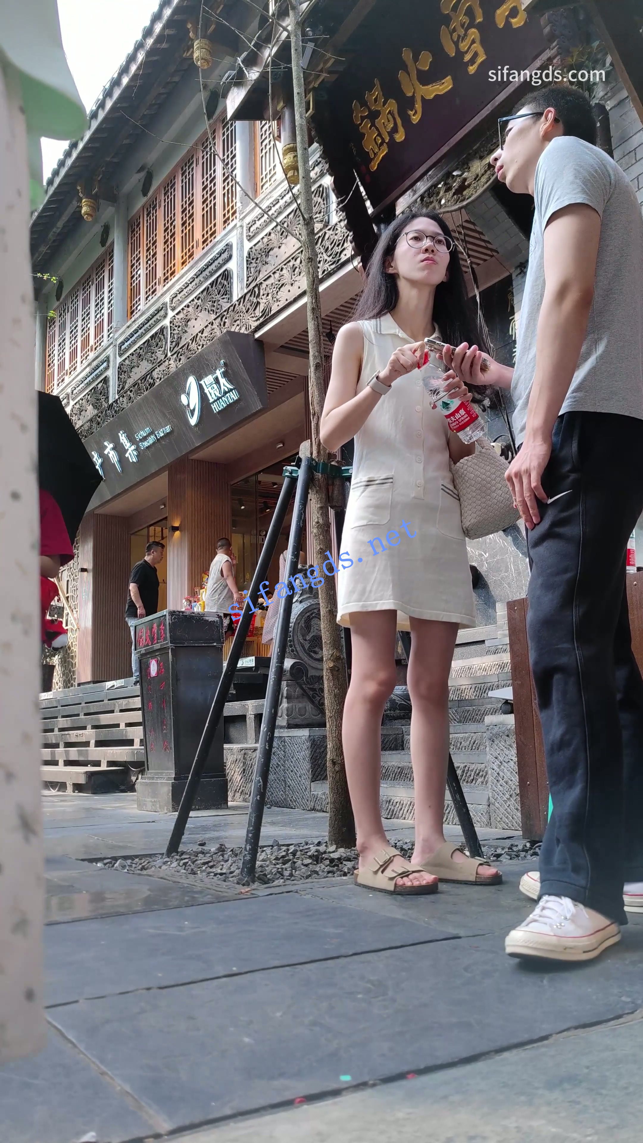 【说明】:白色连衣裙带眼镜小姐姐出来游玩,灰色内内