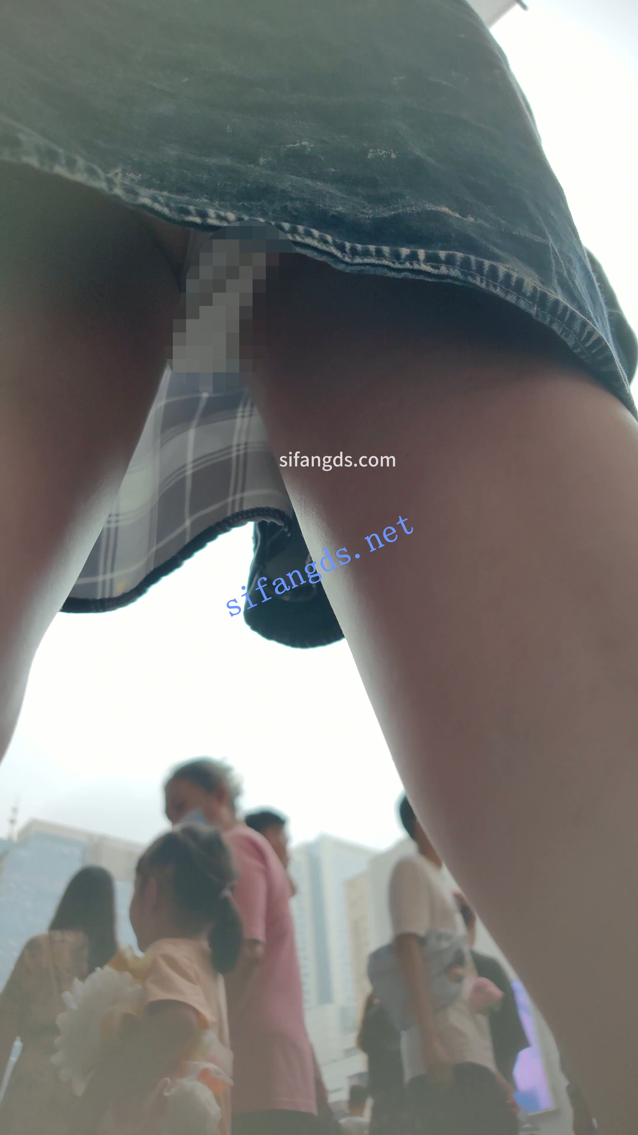 【CSCD】格子连衣裙美女和闺蜜下雨等车,白色内内