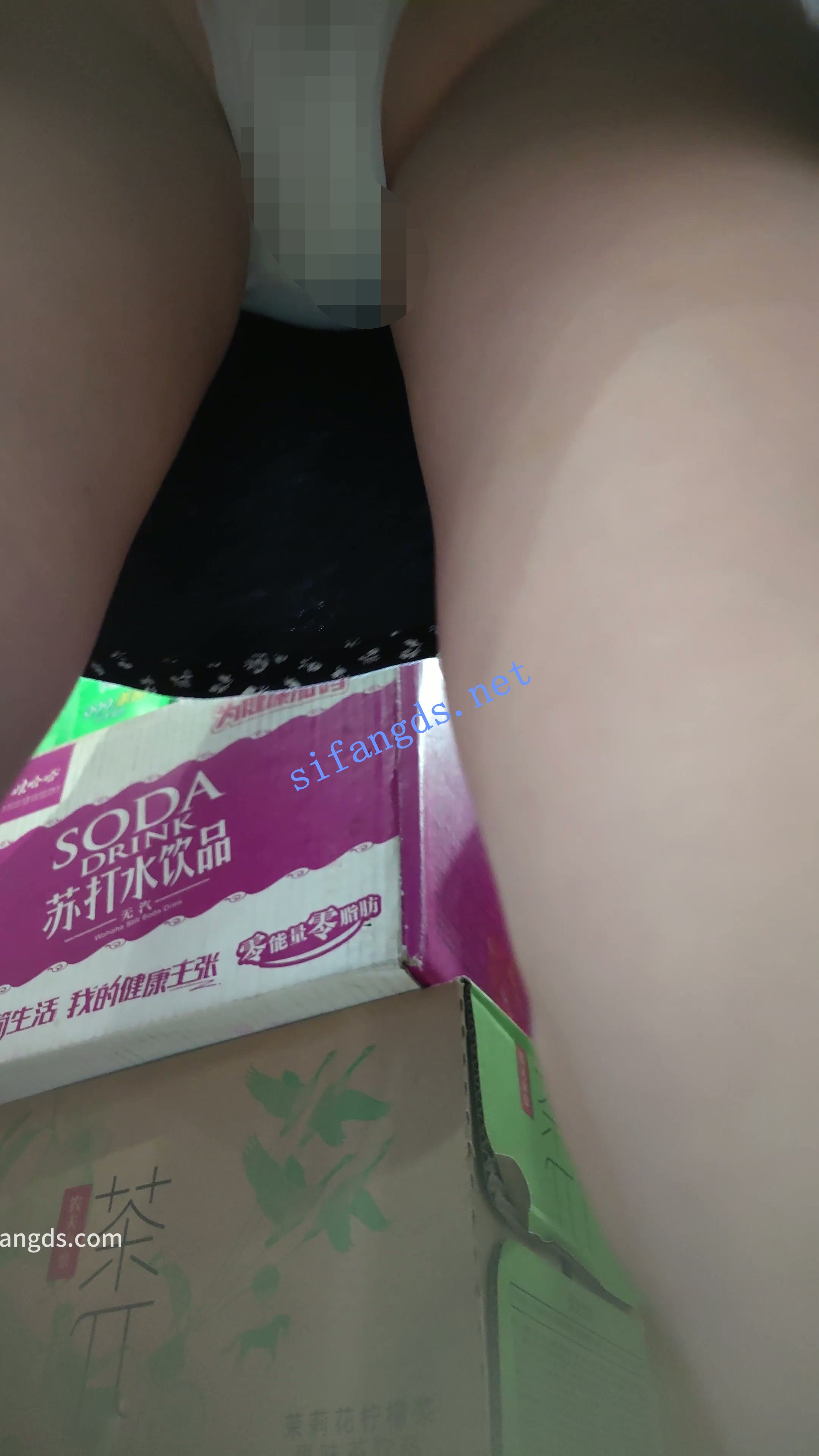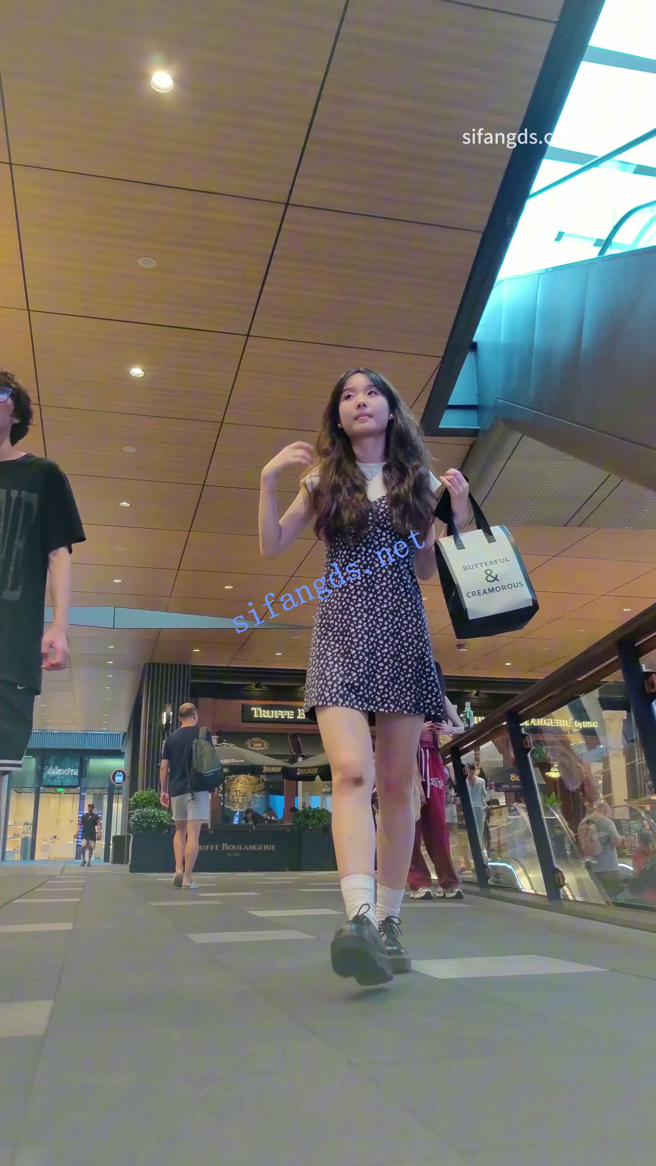 【说明】:蓝色印花连衣裙清纯小姐姐和男朋友逛街,白色内