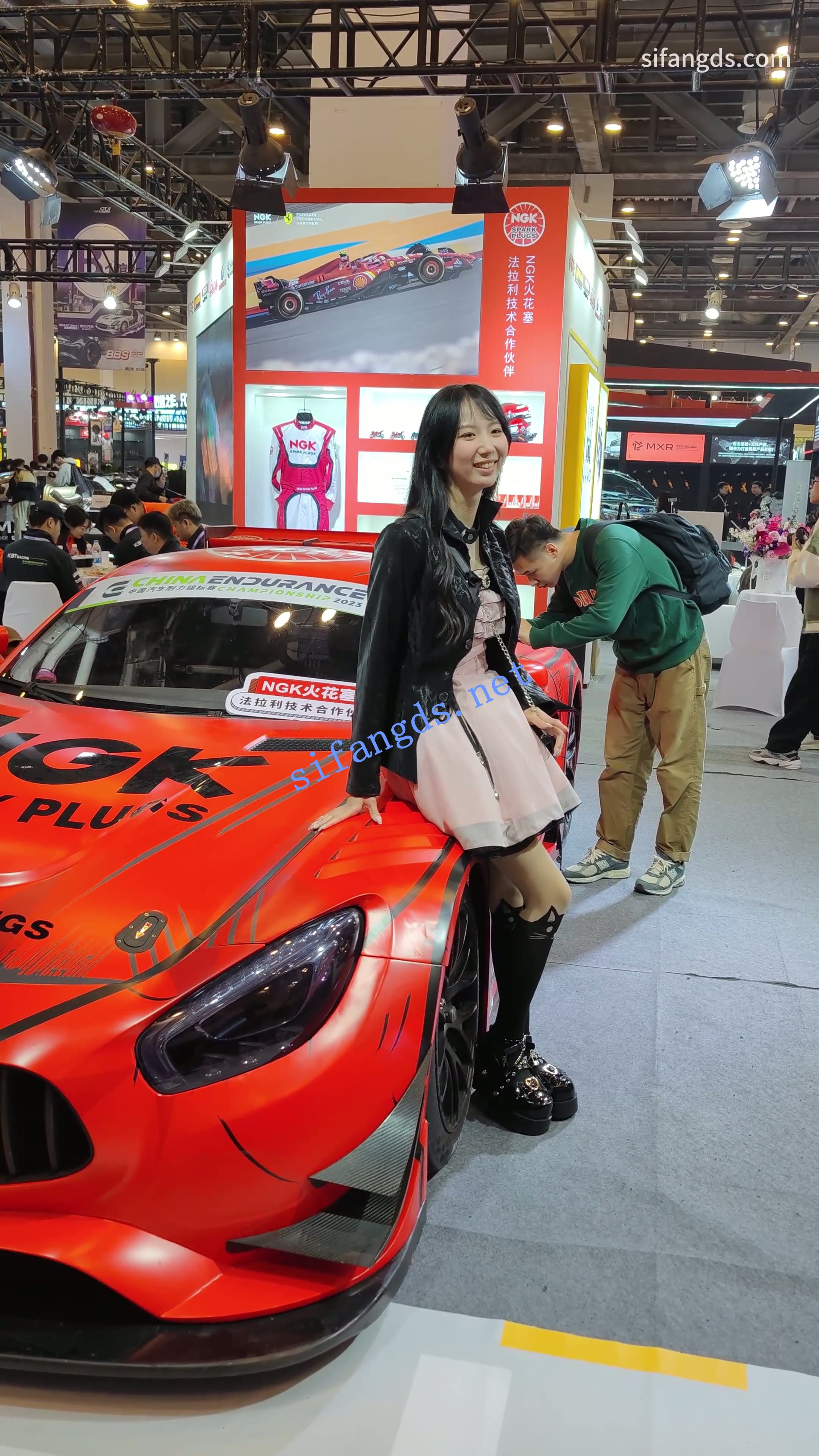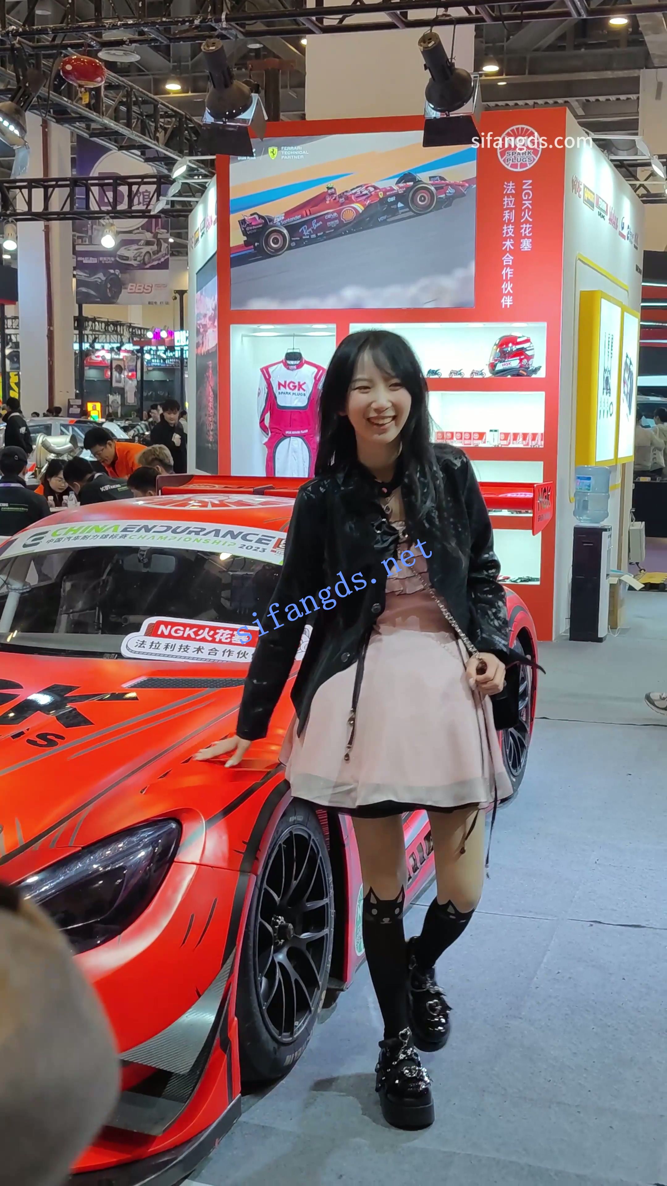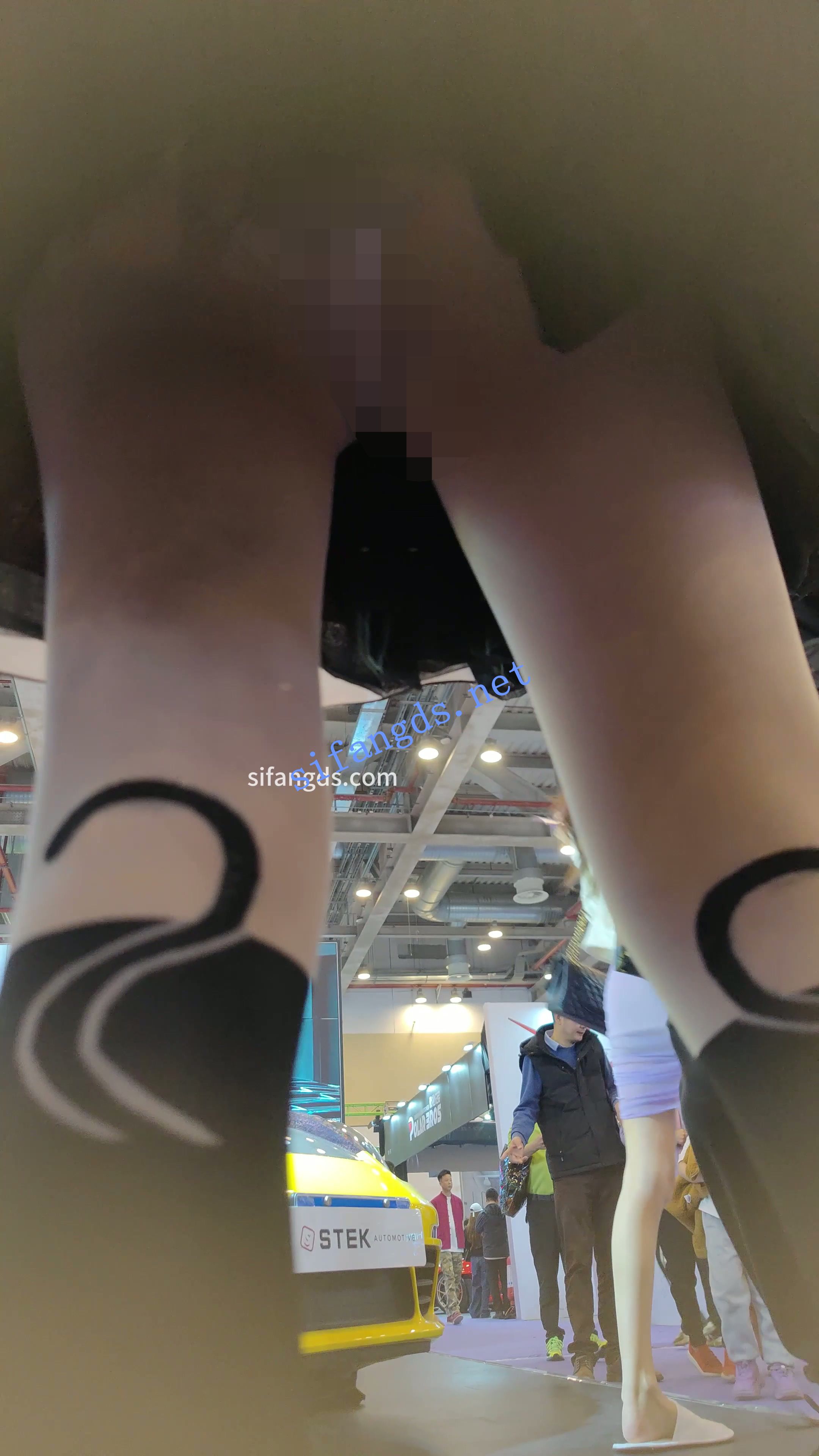 【说明】:粉色连衣裙肉丝小姐姐车展拍照,粉色内内