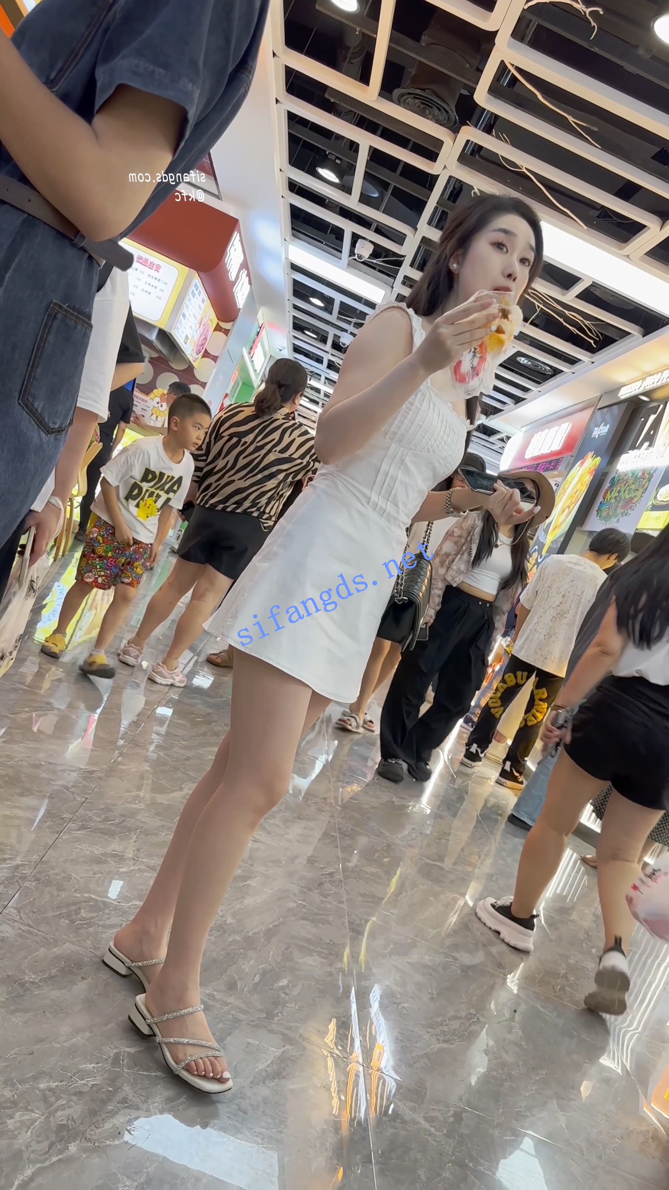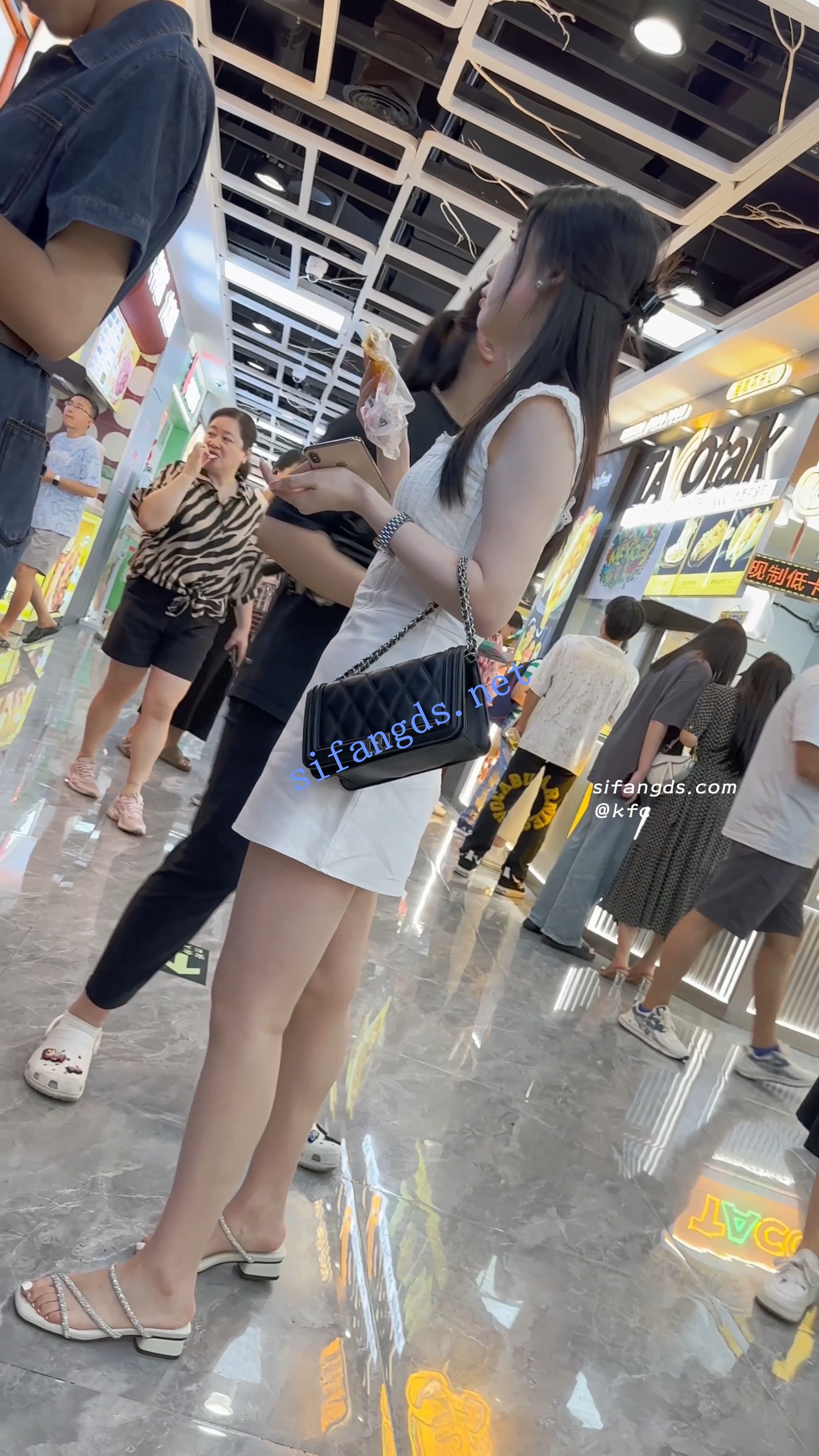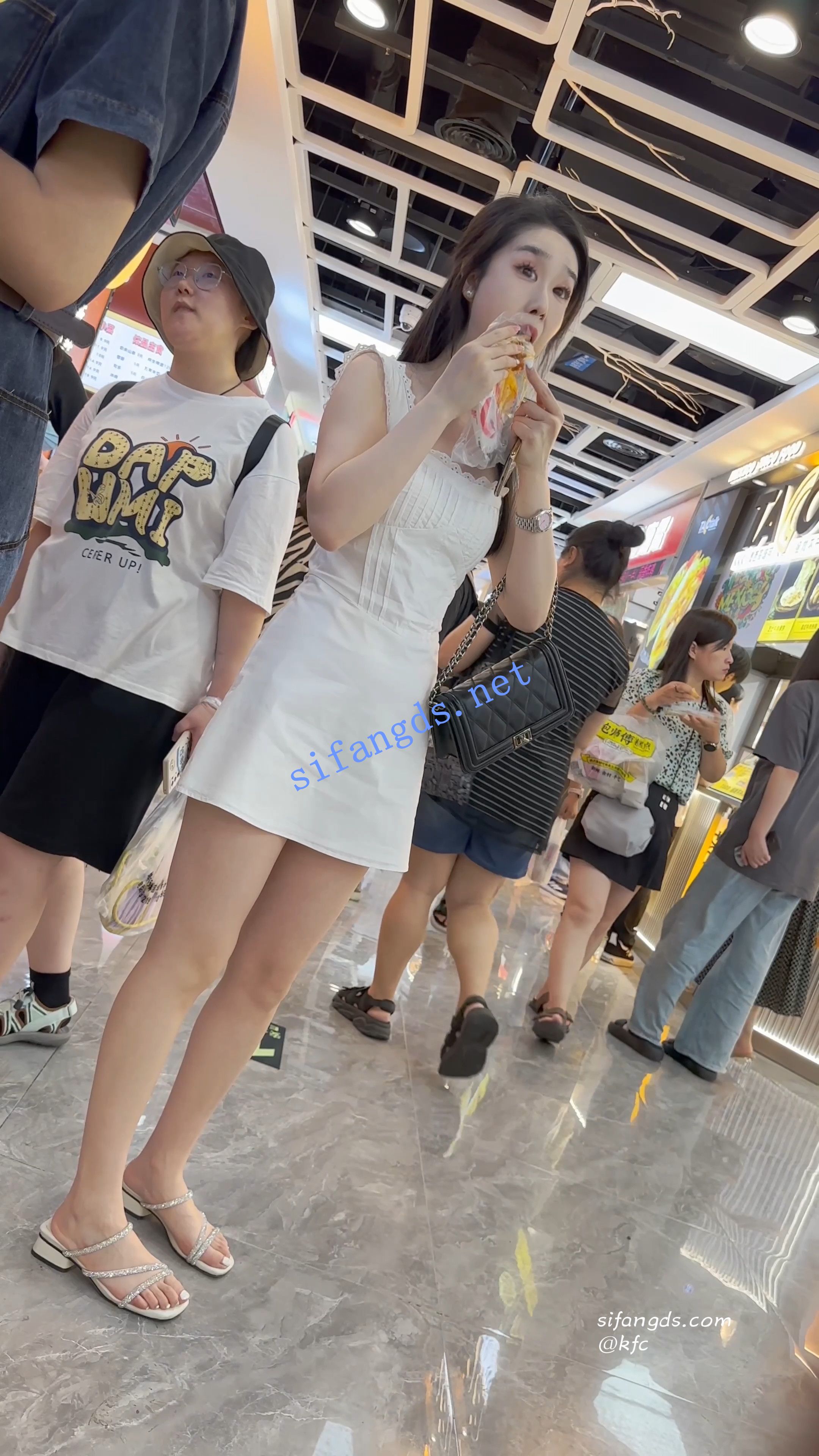 【KFC】吊带裙少妇独自逛街吃小吃·粉色薄内微透·低角度CD