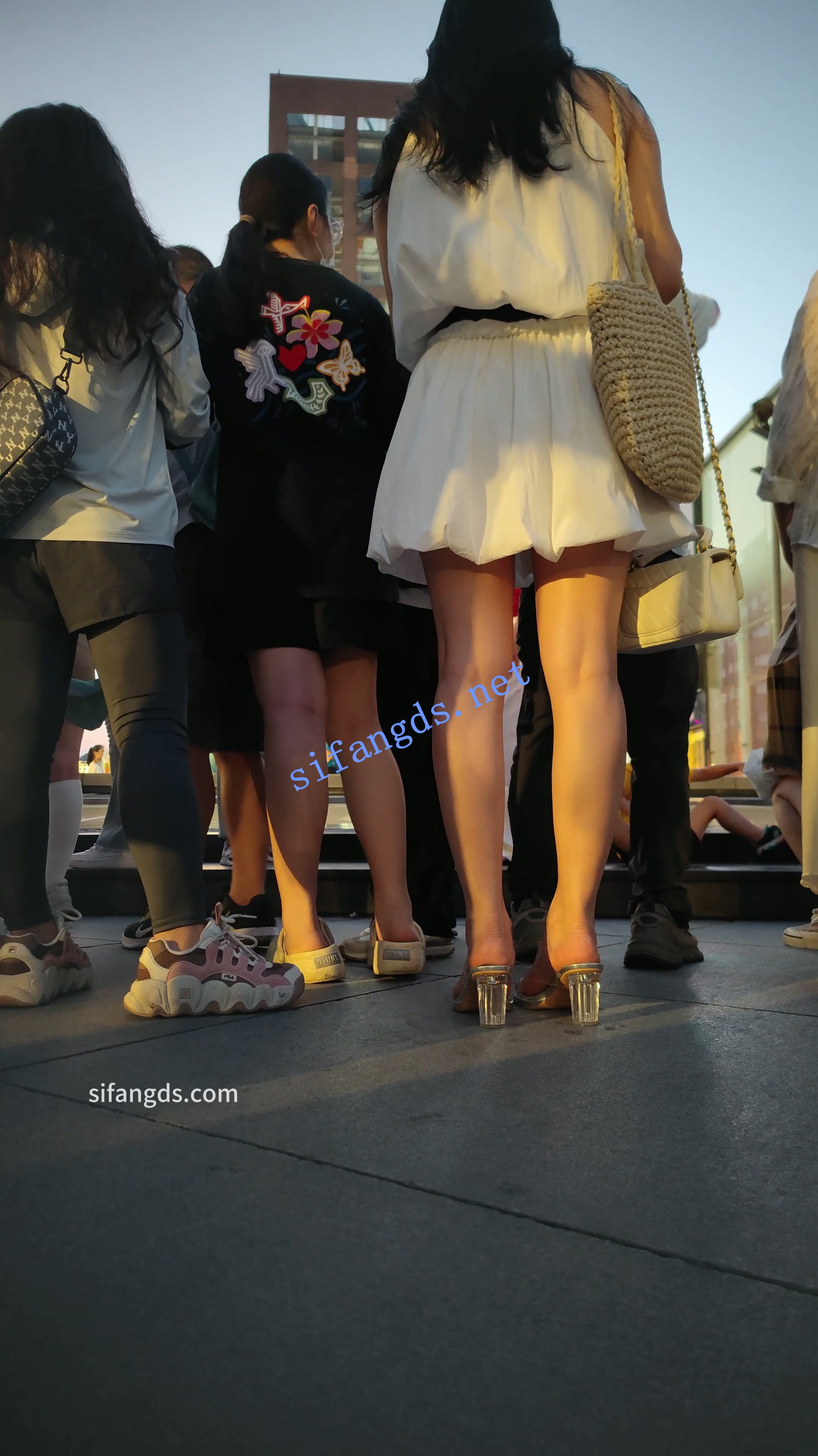【CSCD】白色连衣裙美女撅着屁股给人拍照,黄色内内
