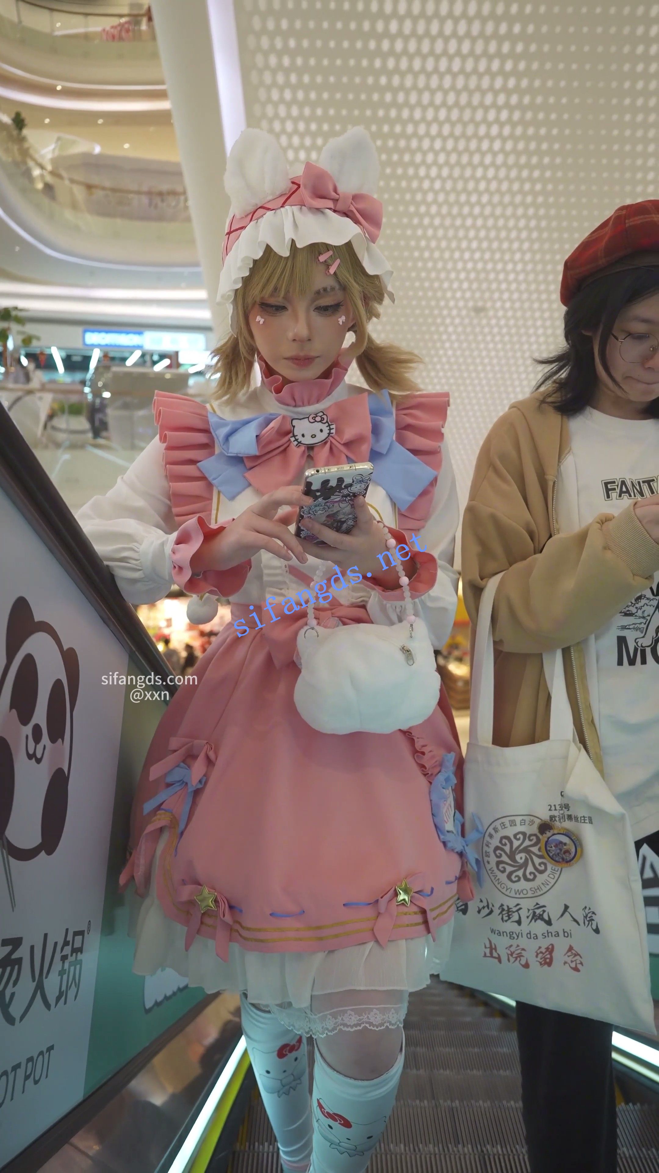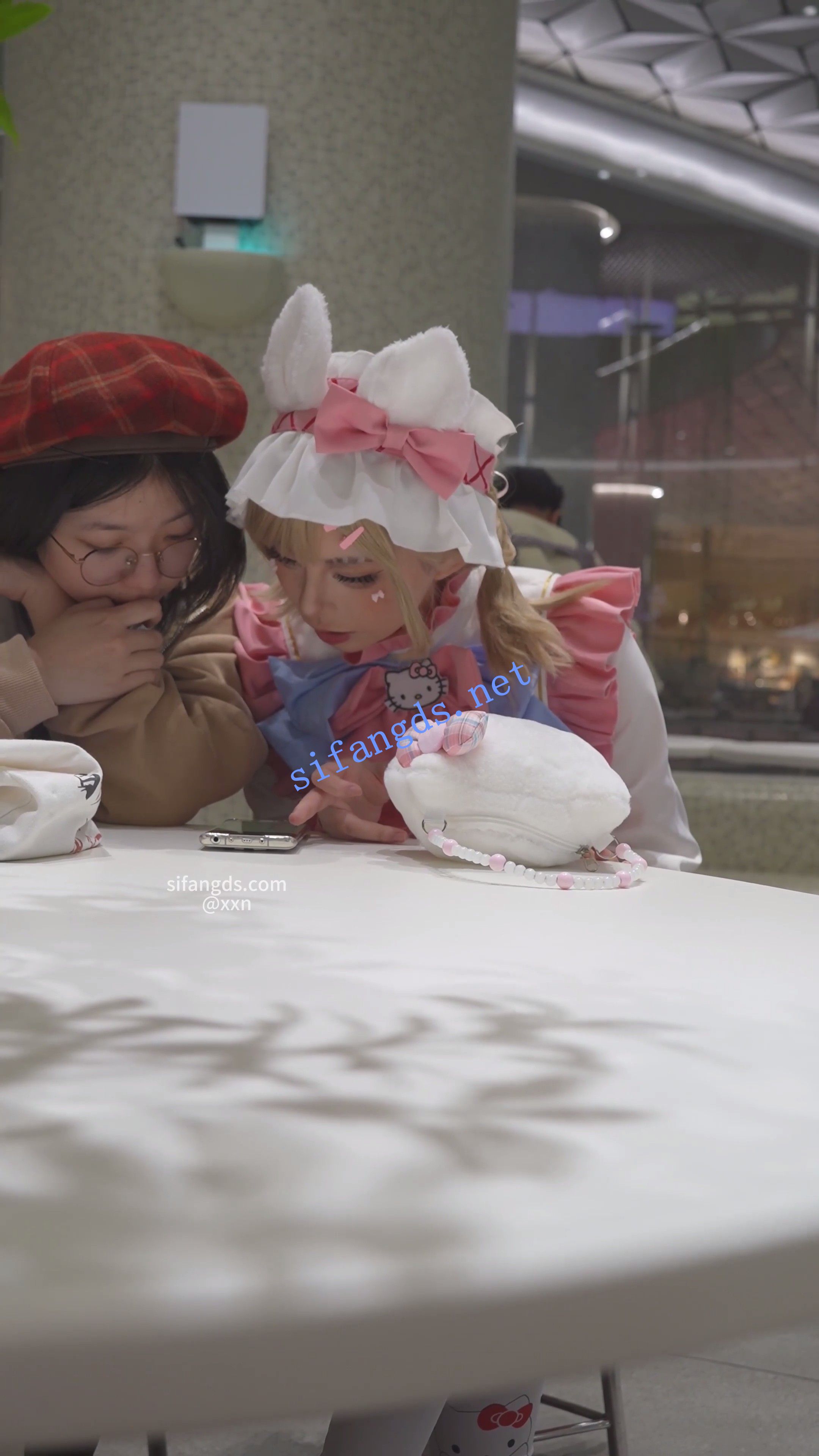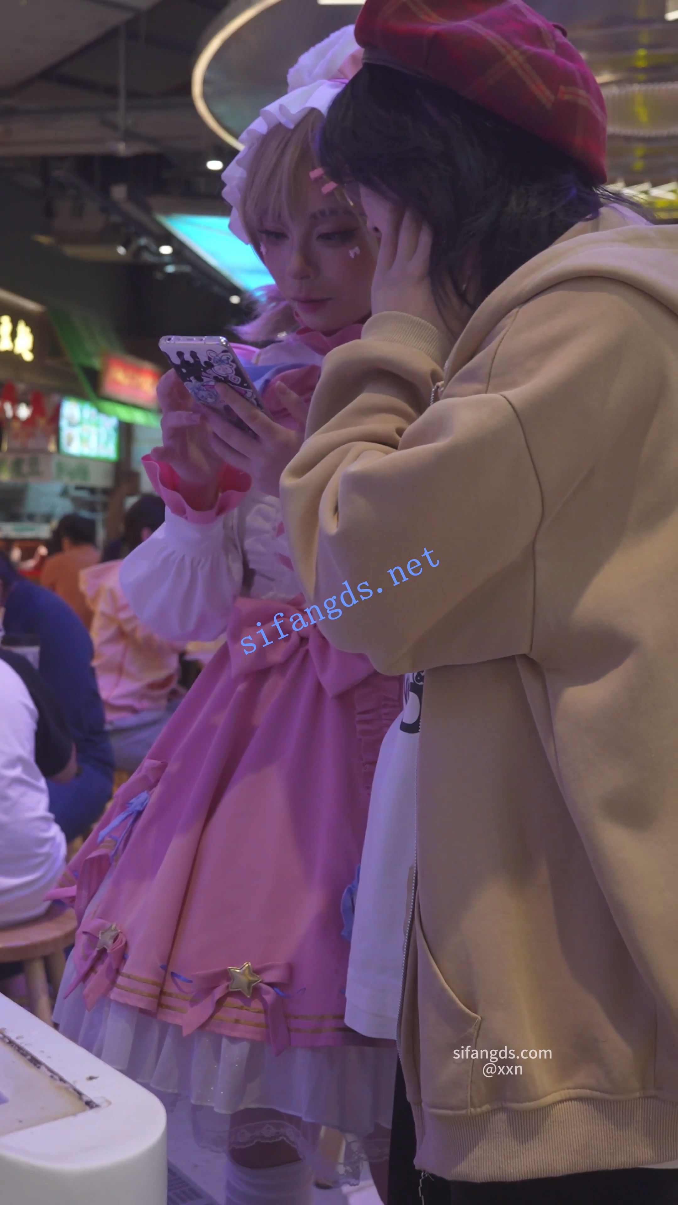 第五人格cos萌妹逛商场,在奶茶店拍抖音,被抄底蕾丝边黄内,桌下视角也能看到内裤。。