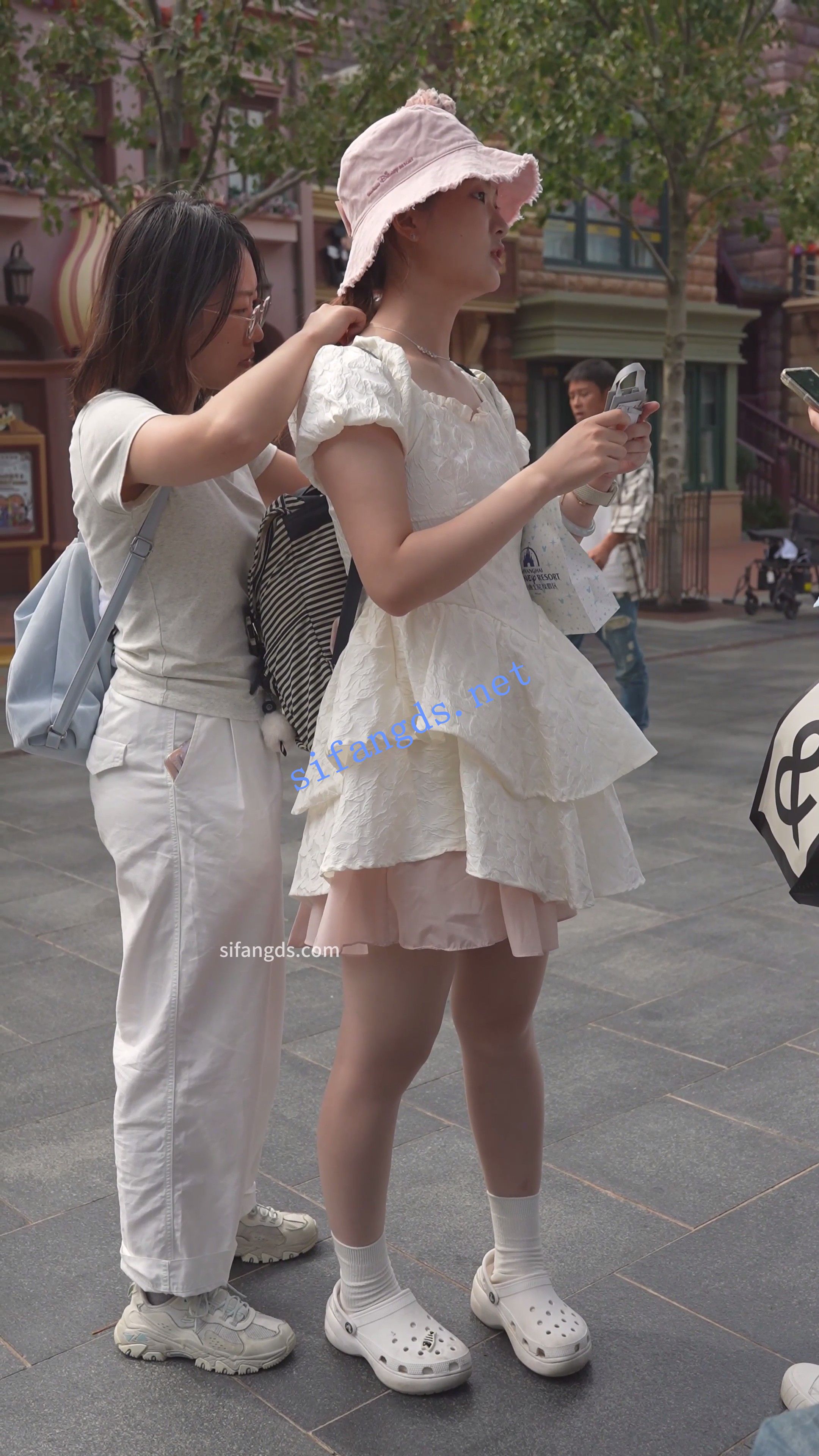 蕾丝裙小姐姐肉色丝袜破洞了,无痕内弯腰CD。。
