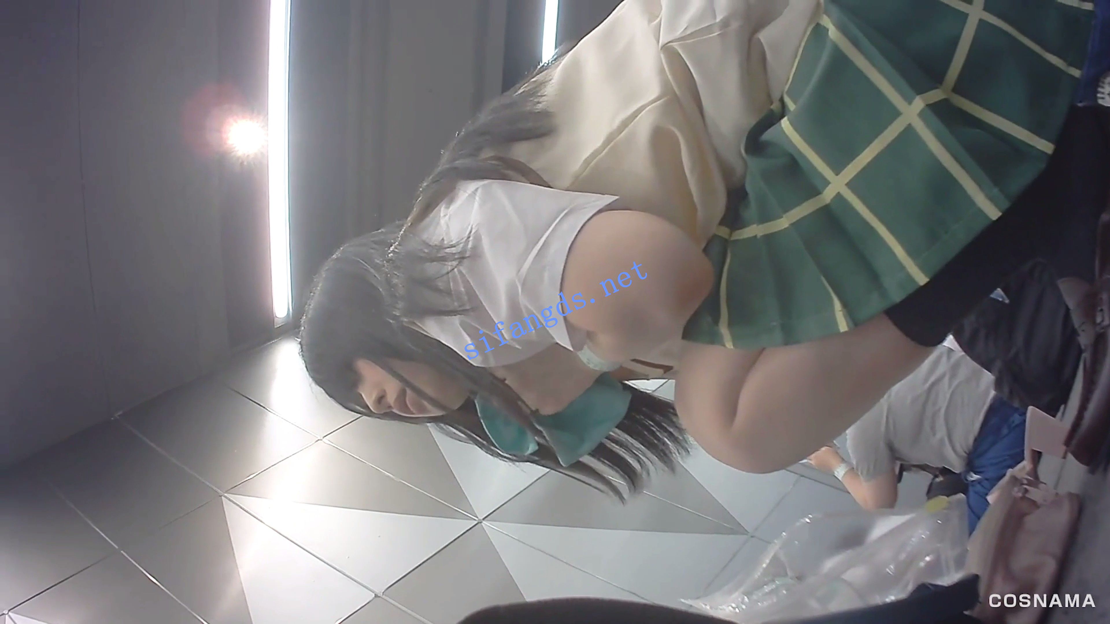 这段视频里有两位Coser![第一人] 约7分38秒这位岛风Coser正在参加ROM销售活动。这并非只限于《舰队Colle》的活动,但这类活动经常会有Coser穿上一些相当暴露的Cosplay服装来销售ROM!这位女孩也是一位非常有趣的Coser。她身材很好,而且很可爱!说到岛风,还有那条性感的黑色丁字裤!岛风Coser很可能会穿丁字裤!有些Coser会穿内裤,但由于她的服装是迷你裙,内裤很容易外露。这位Coser的内裤前面有点透明,可能是因为她在卖ROM。很难分辨出那是图案还是透明的,所以我稍微模糊了一下。(如果完全看得见就糟了。)岛风的迷你裙让她的屁股无论摆什么姿势都很容易被拍到!因为她是个很有趣的女孩,所以我让她摆了各种各样的姿势!【第二人】7分39秒 – 17分57秒这是Cosplay活动中的典型场景。在休息区,我看到一位Cosplayer正在Cosplay《恋恋不忘》里的古手川,她正在穿袜子,调整服装。我走到她旁边,用假相机偷偷拍了她!不愧是古手川!她穿着一条淫荡的丁字裤!休息结束后,古手川去了礼品店。难得遇到这么性感撩人的Coser,所以我就跟着她逛街了!她逛街的时候,我还顺手买了几条性感内裤!这次两位Coser都穿了同款丁字裤!