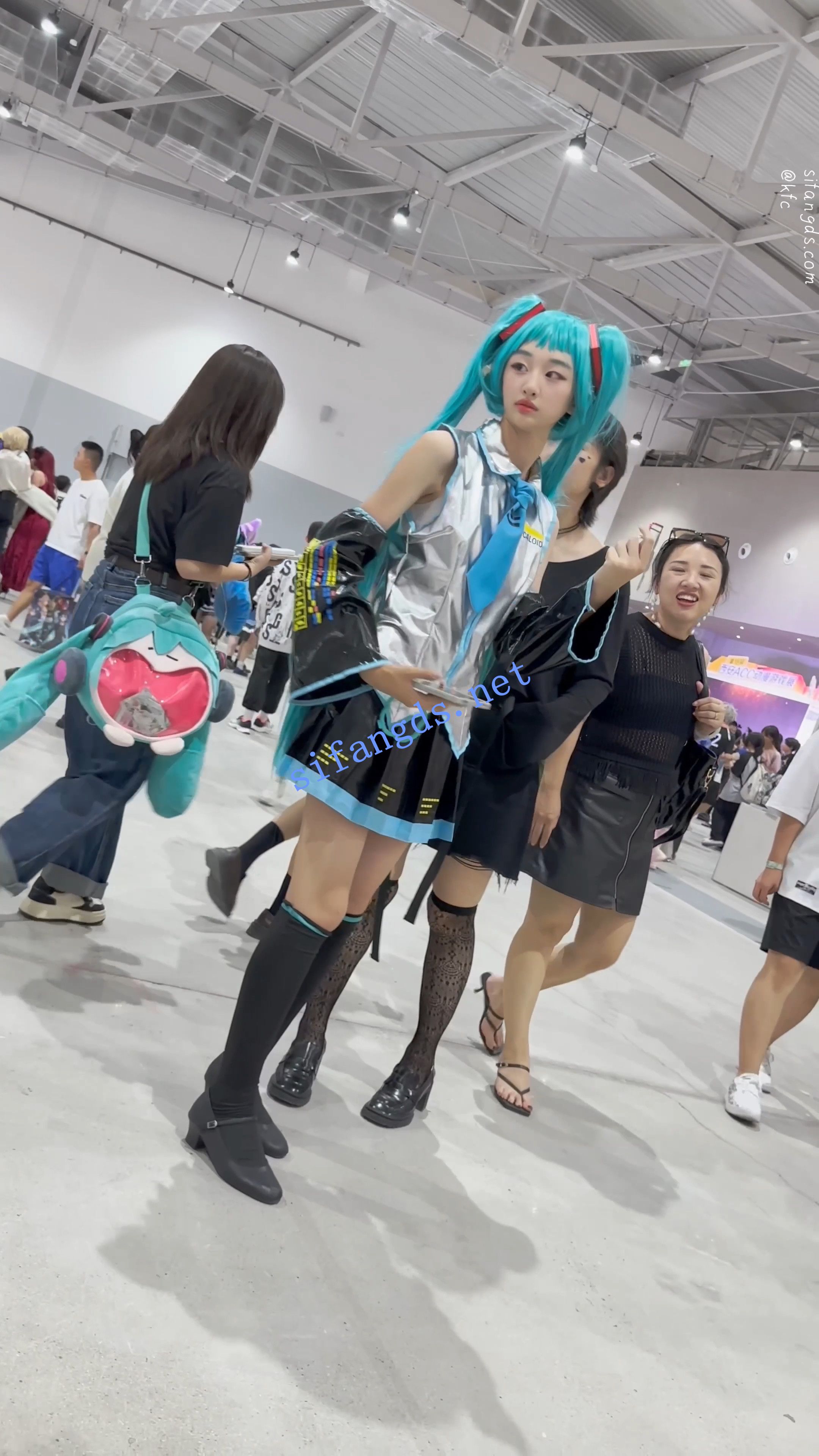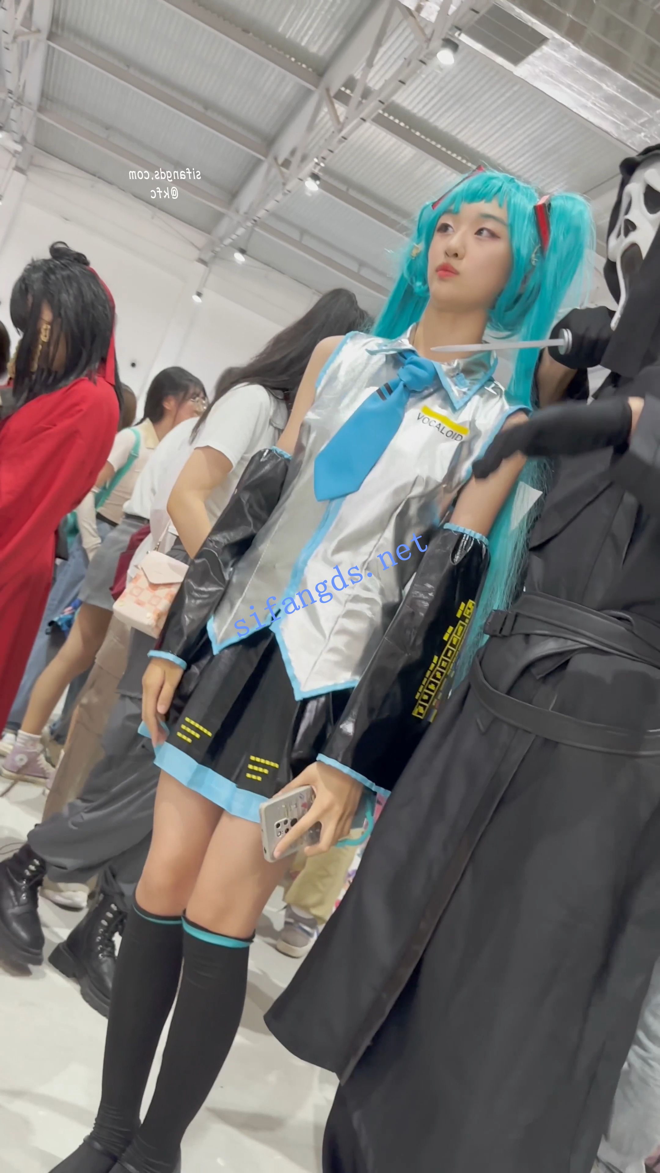 【KFC】大长腿COSER初音学生妹·短裙过膝袜绿色内内青春十足