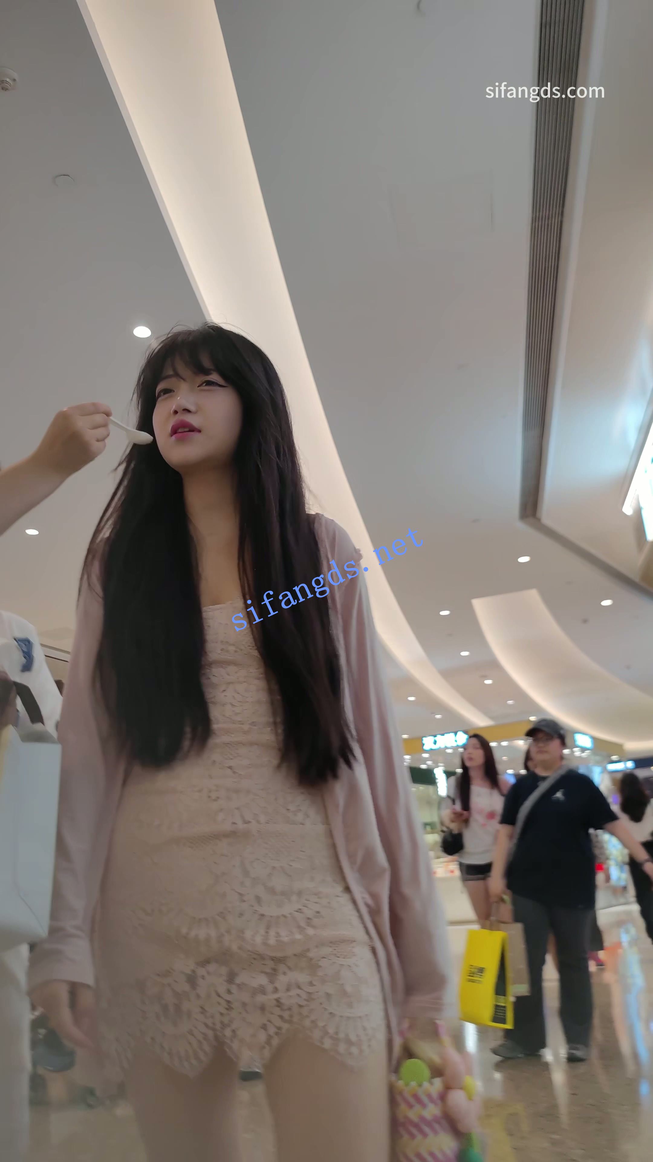 【说明】:粉色连衣裙美女和朋友逛街,白色内内